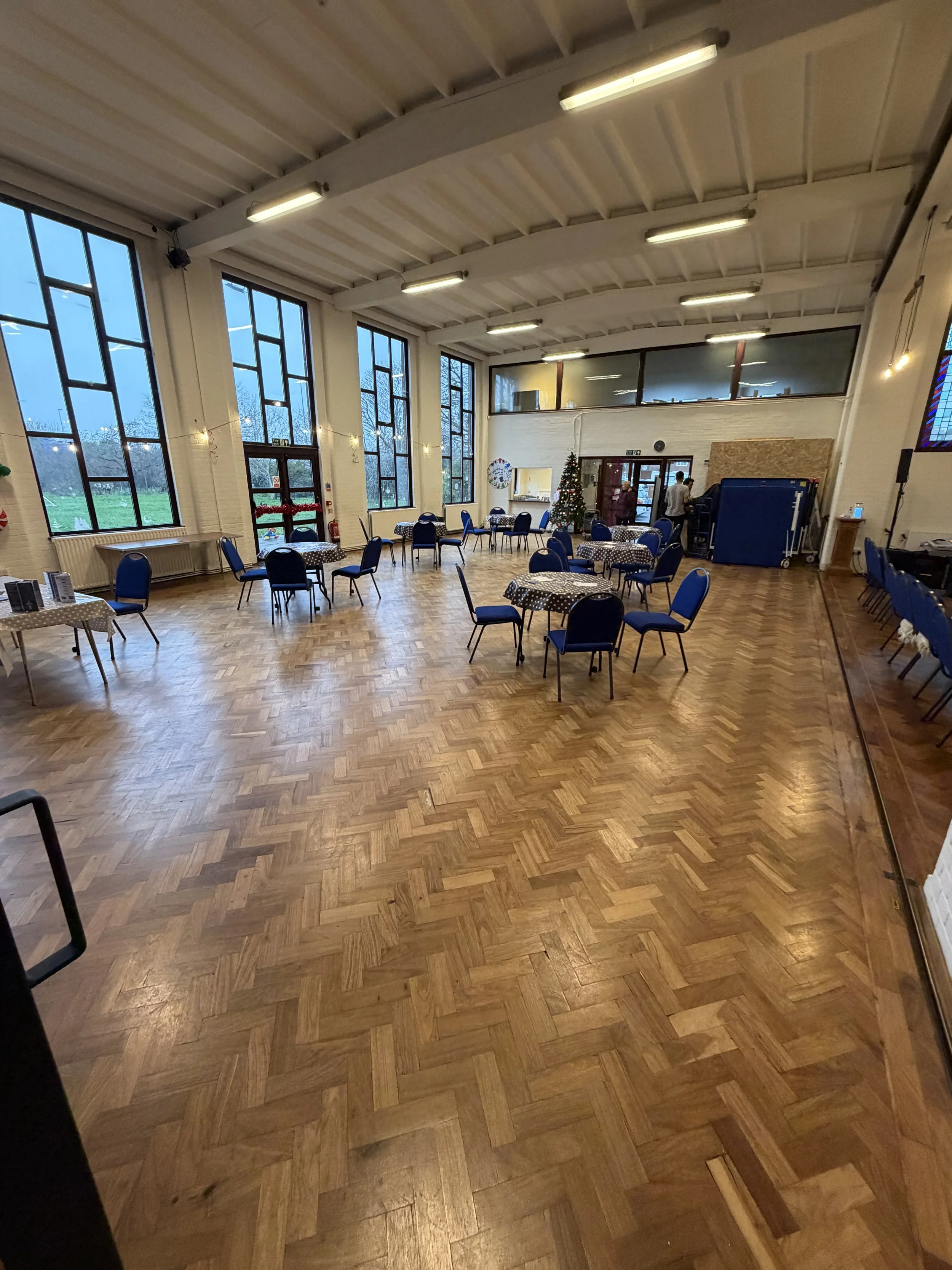 Our Church halll offers a warm and versatile space suitable for community events, classes, celebrations and gatherings of all kinds. Featuring beautifully maintained wood flooring, the hall provides a cozy and inviting atmosphere for guests.
